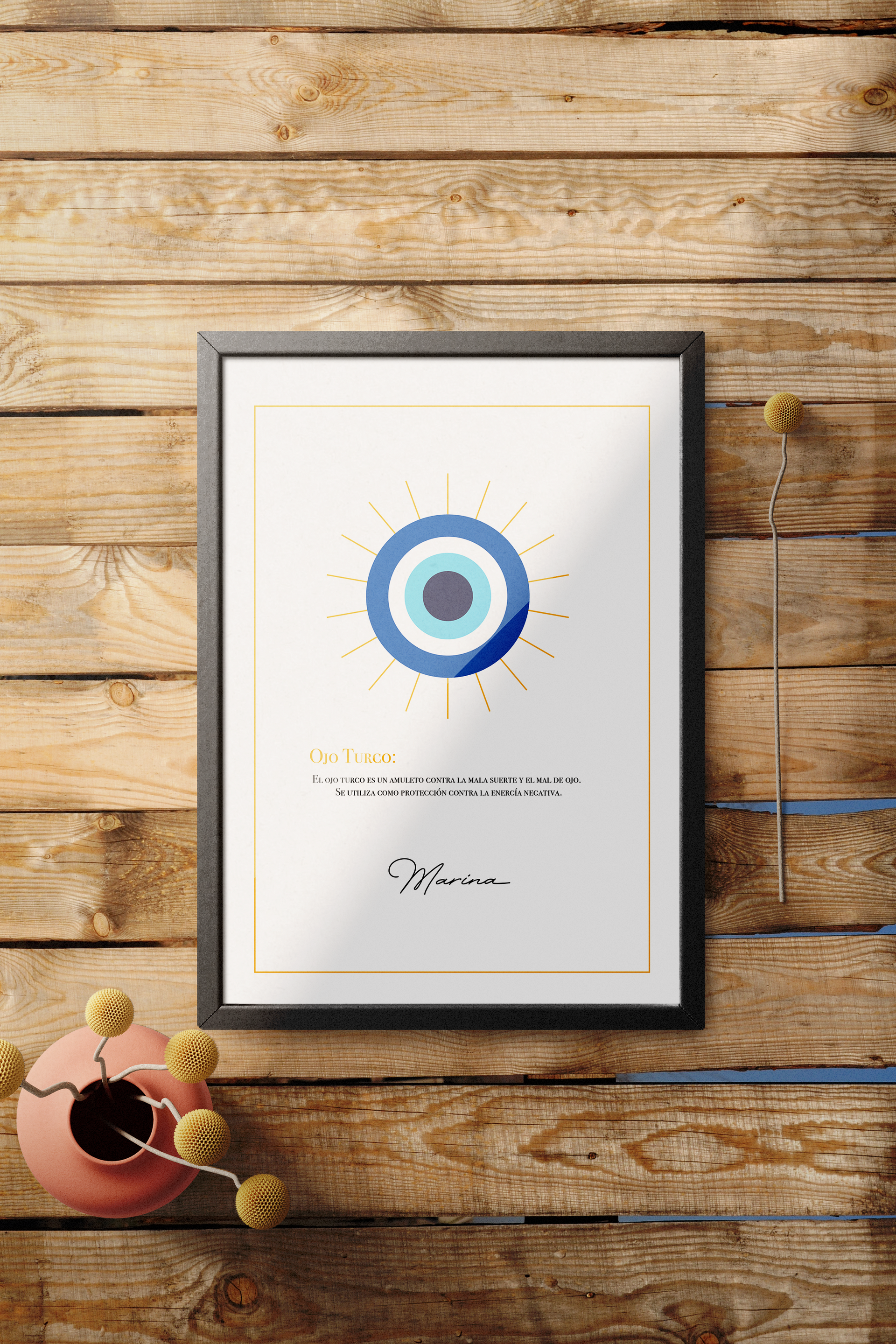 El "ojo turco" es un amuleto popular utilizado para protegerse contra el mal de ojo y las energías negativas. También se conoce como "nazar" o "ojo azul".